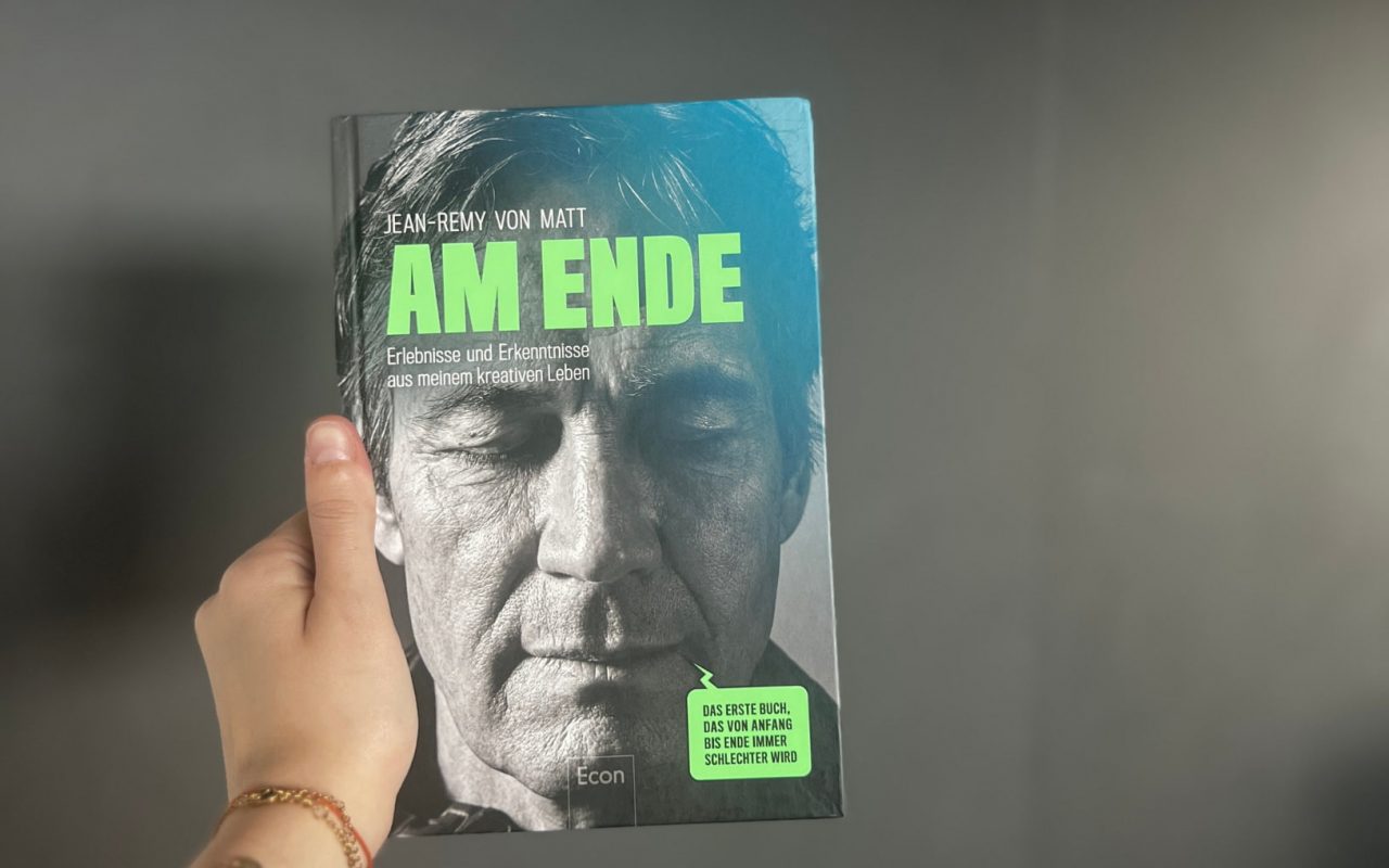 Stell dir vor, du bewirbst dein eigenes Buch damit, dass es am Ende schlechter wird â und dass du es getrost weglegen darfst, sobald es dir nichts mehr gibt. âAm Endeâ von Jean-Remy von Matt ist wirklich alles andere als eine klassische Biografie. Es ist vielmehr eine Sammlung von Gedanken, Anekdoten und eigenstĂ€ndigen Geschichten von einem der einflussreichsten Marketingköpfe Deutschlands. Und genau deshalb ein Must-Read fĂŒr mich.